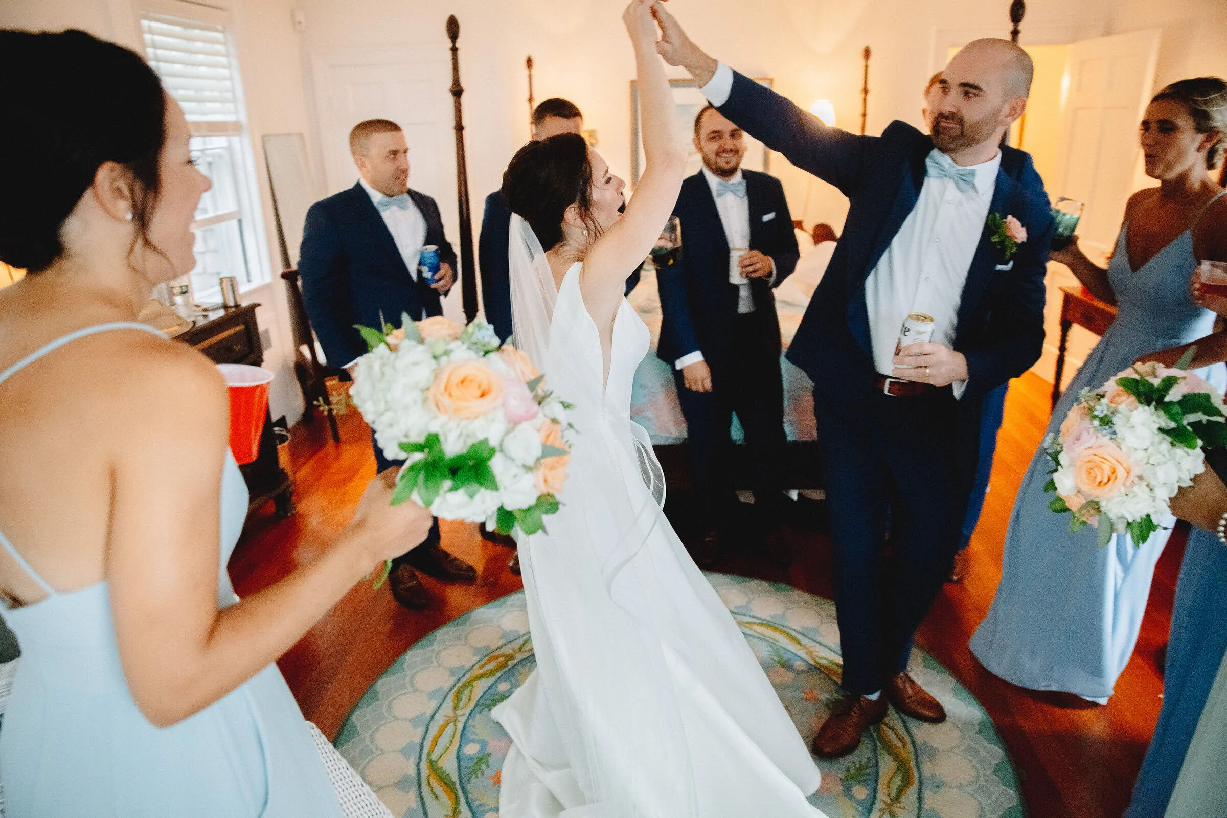 Enjoy these sweet and magical moments from a sweet and fun backyard wedding in Chatham, MA. Ocean views and high fives are the best vibes. Allows this to inspire your potential rainy day wedding and how incredible it can be regardless.